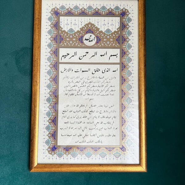 Evde asılı olsa bi iznillah o eve hırsız girmez, yangından emin olur. [Fevaid-i Osmaniyye]